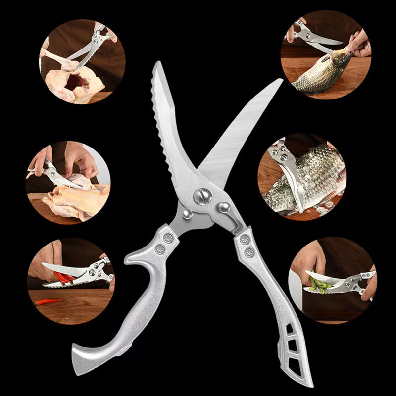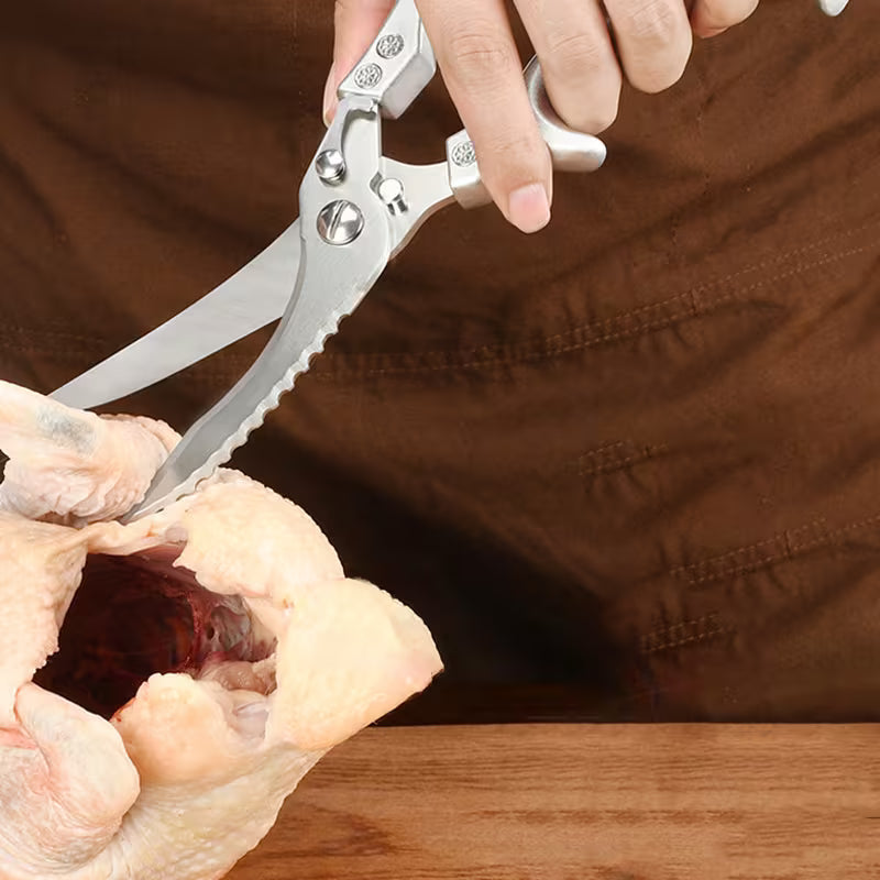 هذا المقص الفولاذي مثالي لتقطيع الدواجن، اللحوم، والخضروات بكل سهولة بفضل شفراته